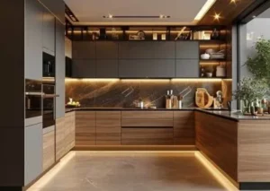 - استخدام إضاءة LED أسفل الخزائن.